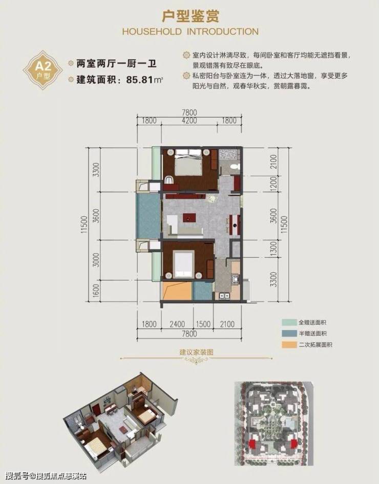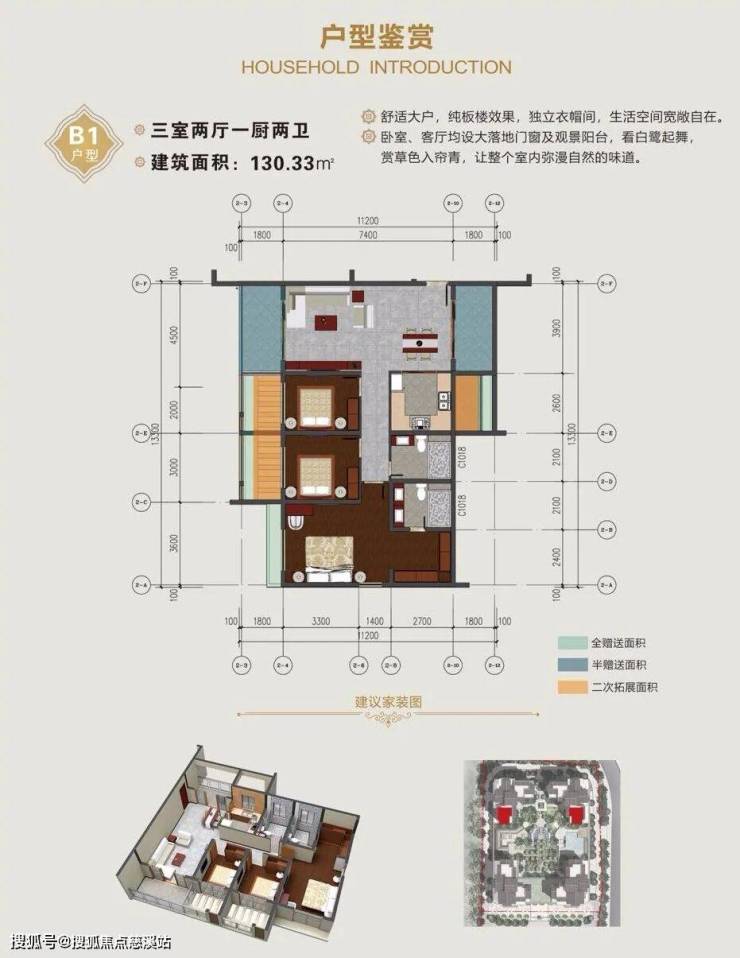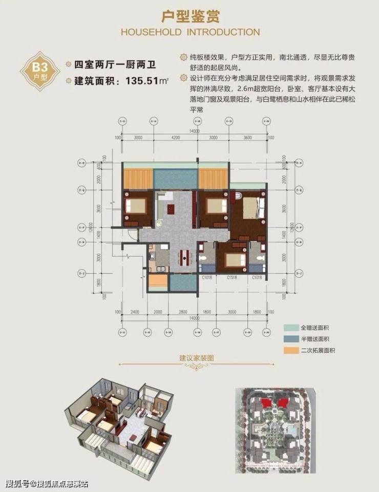 主次卧室、客厅特设观景阳台,让视野随着地面延伸,四季变迁尽收眼底。