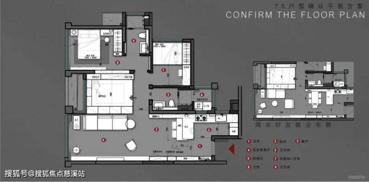 建面约75㎡三房两厅两卫户型,专为小资年轻家庭精心打造。主卧套房设计搭配独立家政阳台,百变次卧可与客厅拓展约6.1m奢阔宽厅,小房子也大空间。