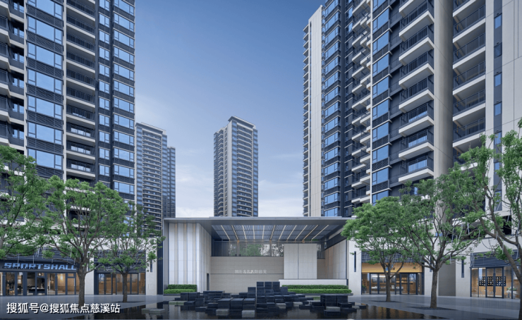 非对称式的社区南大门,运用冷灰色调,并在不同材料肌理的冲撞下,凸显现代未来感……极富仪式感的广场营造,提升社区品质格调。
