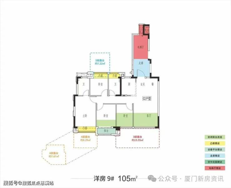 洋房:1梯2户,105平,高层第4代住宅:2梯2户,125平