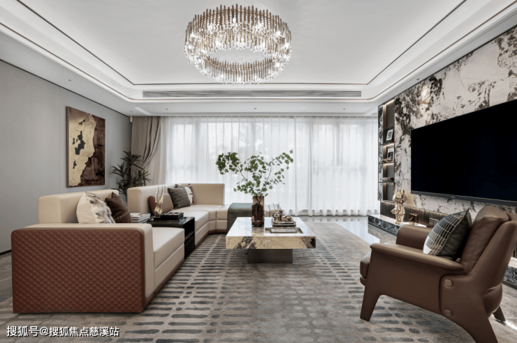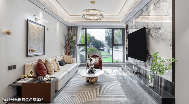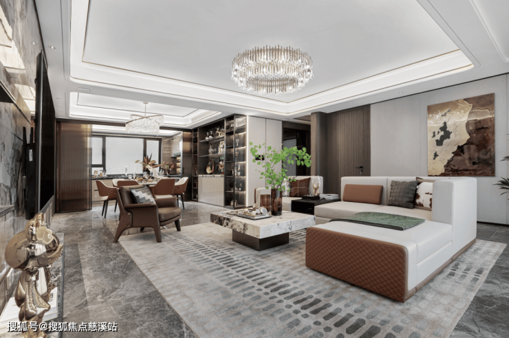 开间6米,进深3.4米,层高3米的奢华客厅, 近乎完美的空间尺度搭配,呈现出极致的空间视觉冲击力。