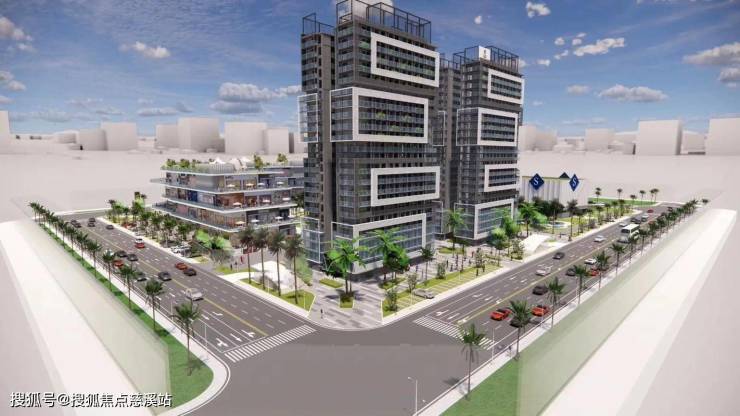 建筑类型:2栋轻奢公寓、近8万㎡热带风情商业综合体、下沉式篮球场、运动方盒