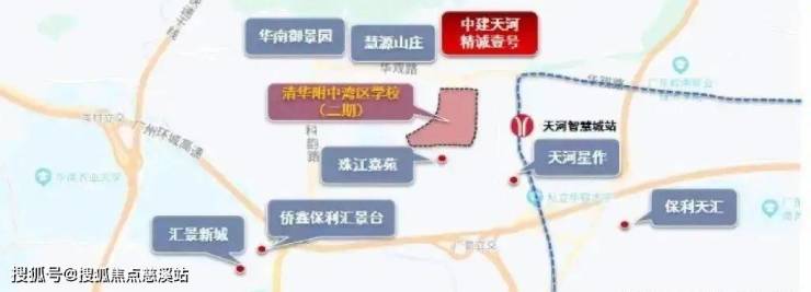 距离项目800米的12年全日制市属公办名校清华附中湾区学校二期,共规划108个班,预计2025年6月完工并投入使用。