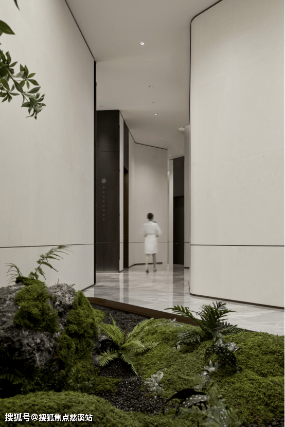 EADG泛亚国际景观设计公司巧妙采用园中院的手法,用一道简洁大方的白木纹长墙在闹市围了一方内秀的“艺术行馆”,剔除浮华与喧嚣,以自然与生迹为展品。洄影廊中步移景异,素色石材被光影刻画下自然的印记,回响的潺潺水声孕育生机,重重绿荫自成小世界。万籁生山,一星在水。身处艺境,疑梦重续。