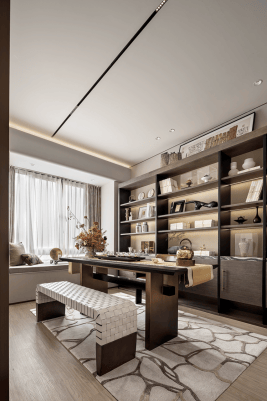 289㎡大平层室内装饰以隐奢东方为主题,从空间的精妙布局到精选材质的考究运用,从和谐色彩的细腻调配到每一处细节的匠心雕琢,无一不与国际领先的隐奢装修美学理念同频共振,展现了前沿设计的精髓。
