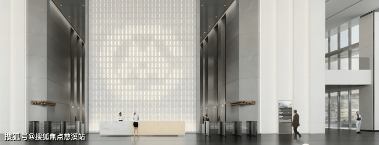 幕墙设计:玻璃幕墙和铝板创新一体化设计,偏灰色系透明玻璃,构建新时代光面美学