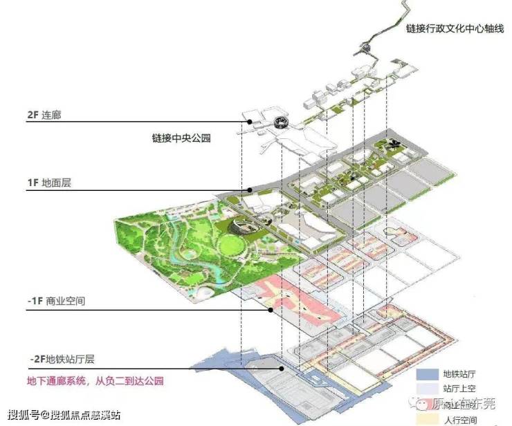 将地下空间统一规划使用后,商务区各楼宇之间的地下空间将实现通车、步行的互通互联,构建高品质的地下空间。