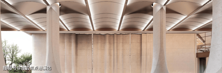 车行入户大门做了殿堂级落客区,与天幕和水景连接,具备豪宅归家奢侈感