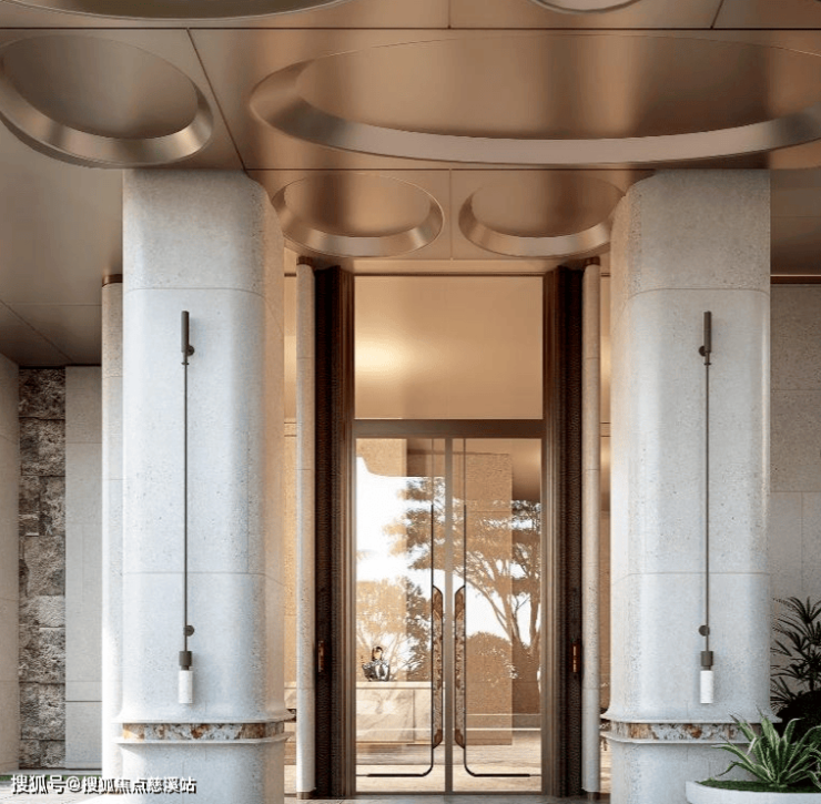 每栋的独立入户大堂,采用无菱角高端石材,风格与大门相呼应,效果图看起来挺高端奢华的。