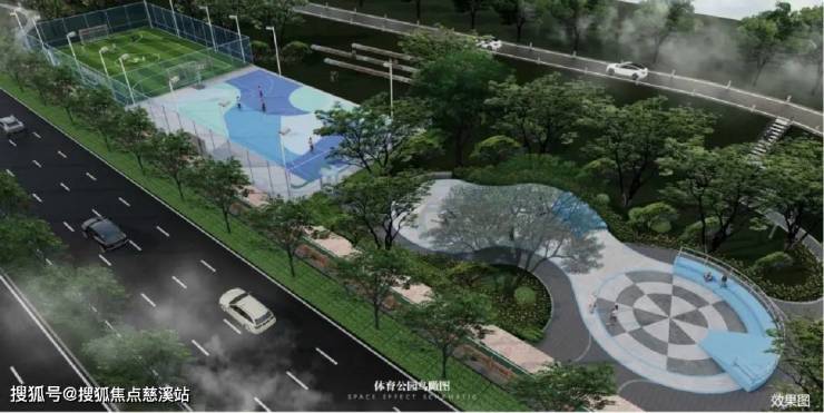 项目自建约5900方江边体育公园,内设5人标准足球场、全场篮球场、滑板场、一米社区农场等特色场所,满足全方位运动与娱乐需求
