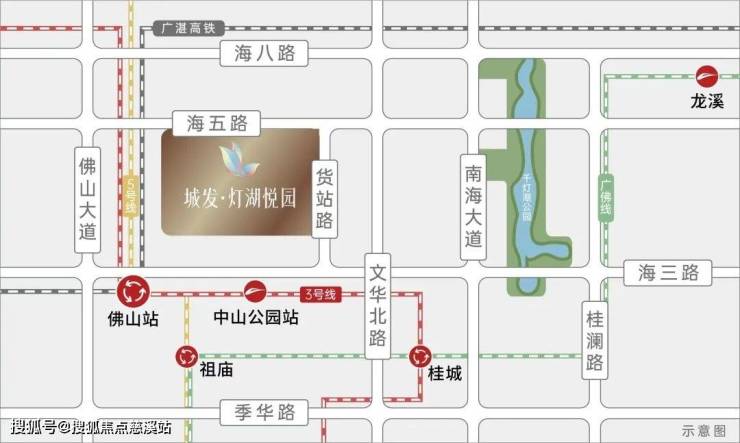 项目位于灯湖中央活力区、佛山站TOD核芯,海五路已通车,约3KM畅达千灯湖,约1.5KM(直线距离)广湛高铁佛山站,1站到广州越秀,速达湾区各城,约700米(直线距离)3号线中山公园站(年中通车),3站桂城8站荔湾,通勤出游皆从容。