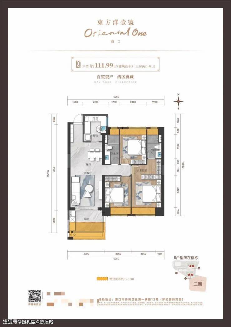 111.99㎡三房两厅两卫,户型方正,南北通透,户户带阳台,豪华装修。