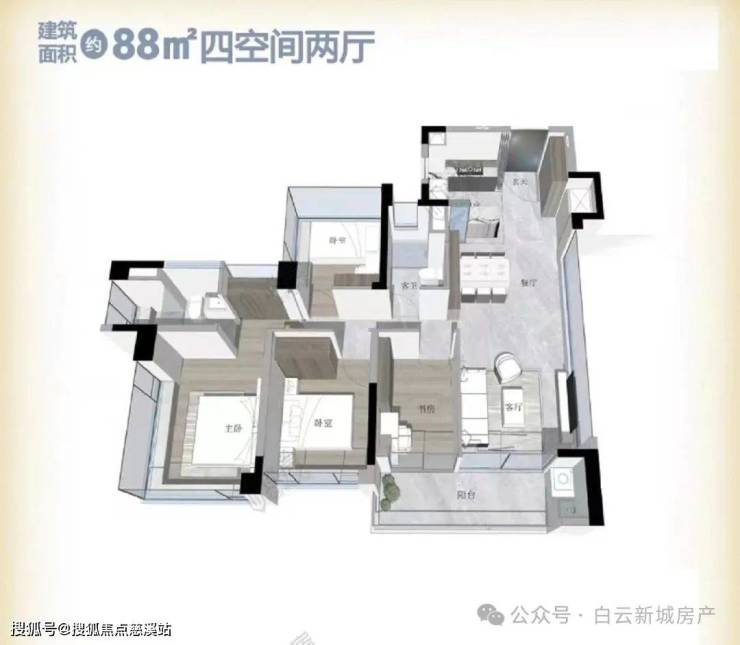 2.在售楼栋:目前在售的户型包括88平四房和105平两种户型,设计精巧,满足不同家庭的需求。
