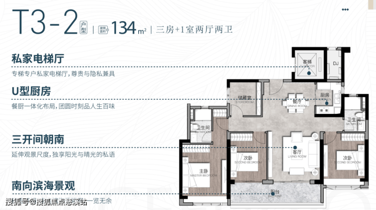 134㎡ 三房+1室两厅两卫 户型(平层)