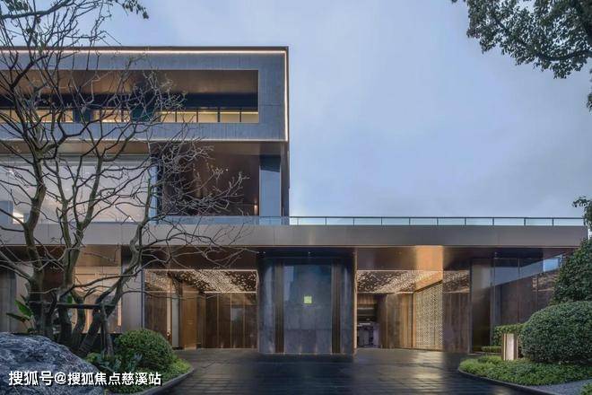 首层设置大挑檐,形成建筑基座,打造酒店式落客区,营造尊贵的归家体验感。外立面属网衬底,独具精致感的门户昭示面打造会所奢华格调,专属幕墙LOGO元素体现顶层人士独特、定制化的生活追求。