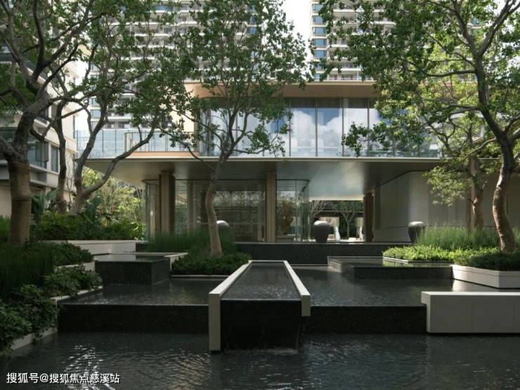 洄游之境:优化入口设计,用树池、连廊与水景围合静谧内院,让归家动线成为“隐于自然”的宁静旅程;