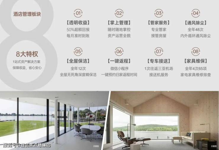 【托管服务】🏠宿集托管计划可可宿集,国际化文旅全产业链综合管理品牌,旗下涵盖文旅运营及酒店管理两大板块,将以专业化整合运营,为巧克力小镇业主提供全面、系统、专业的资产管理及品牌解决方案。●品牌理念致力大文旅产业无边界融合的探索“精品民宿+旅游”的全域度假文旅模式创新●文旅运营板块○已搭建起海南全岛全域旅游○旗下爱西游旅行社,已布局西班牙和西欧市场○未来将深化布局国内主要城市及海外市场