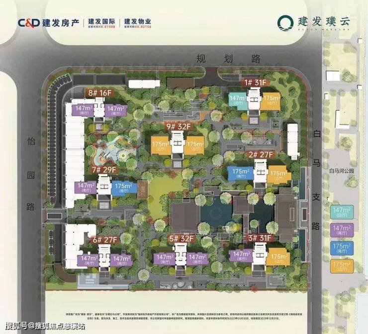 建筑规划:项目由3栋超高层(约42-48层)建筑组成,是片区内的地标性住宅。采用玻璃幕墙+铝板的现代公建化立面,极具品质感和现代感。