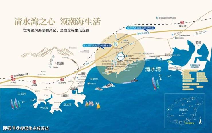 项目地处北纬18°以南,距三亚市区直线距离约45公里,尊踞大三亚醇熟生活圈;位于清水湾度假区中央核心,坐拥清水湾万亩文旅醇熟配套,紧邻陵水黎安国际教育创新试验区,致力于打造清水湾片区产品标杆。