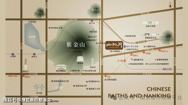 项目地址:山和月项目位于玄武区紫金山东麓,苏宁大道,距离换乘王4号线徐庄·苏宁总部站仅90米。
