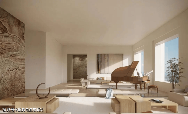 至高约16.8m四开间面宽朝阳,引阳光清风自由流动,空间明亮通透,匹配居者开阔的人生视野与格局。