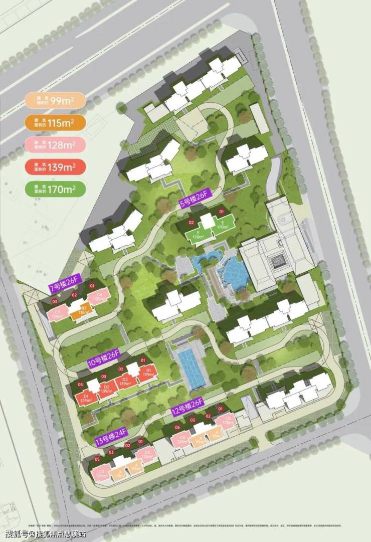 ◇间距宽:南北最大楼间距约92m,视野/采光兼具;