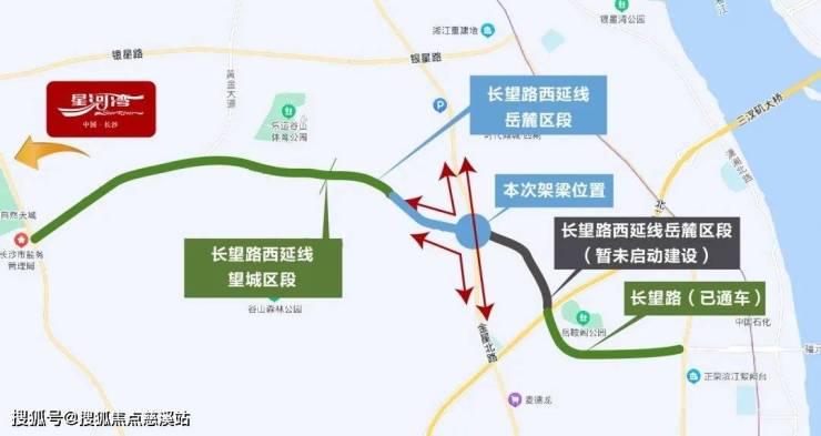 星河湾所在的金山桥街道划入湘江新区后,片区的交通建设正在提速腾飞。长望路:项目门前的黄金大道西,市政路牌已更名为长望路,8月底藕塘隧道通车后,将形成贯通河东与河西的主干道,从星河湾沿着长望路往东10分钟,即可直达金星路;东方红路:提质改造已进入工程招标阶段,投资约8亿,按岳麓大道标准整体提质,打造双向8车道,连接梅溪湖与高铁西片区。