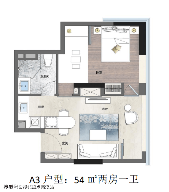 推出面积:42㎡、45㎡的一房及45㎡、54㎡、60㎡的两房。