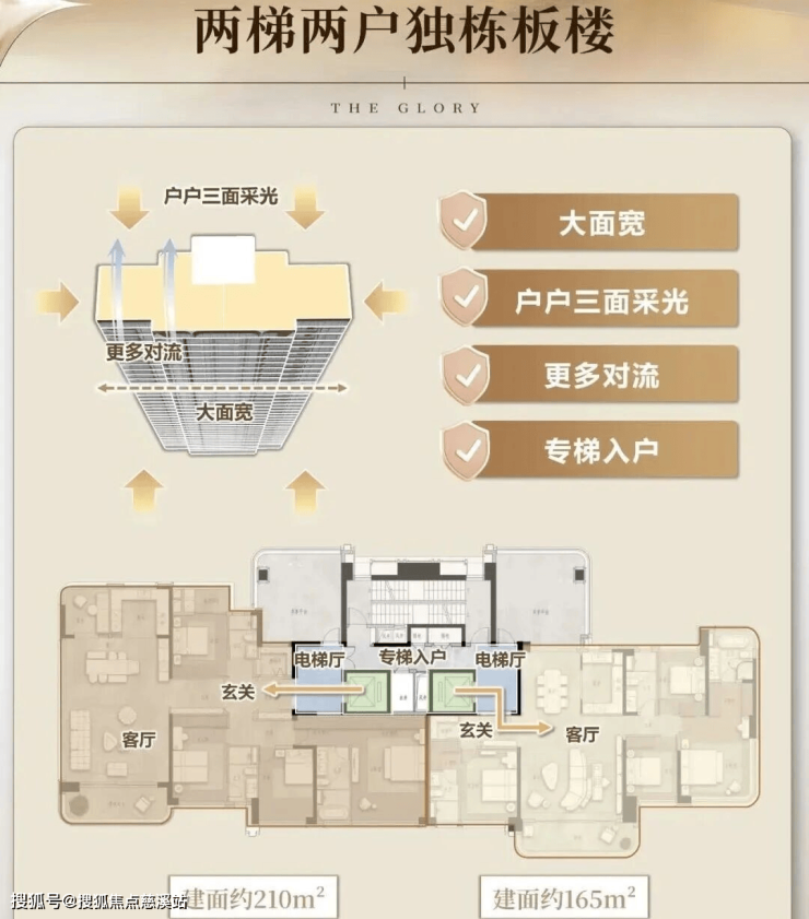 户型纯粹,仅规划建面约165㎡、约210㎡两种大户型,圈层更统一