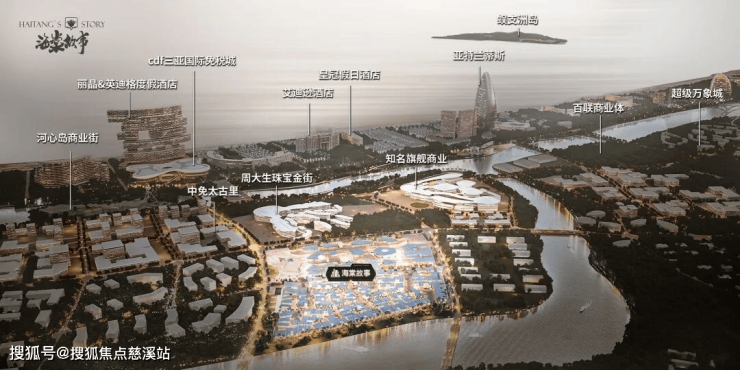 海棠故事—海棠湾核心价值区第一门户与三亚国际免税城、河心岛、太古里、周大生珠宝金街、华润超级万象城,顶流商业IP聚集,共筑千亿商业矩阵。