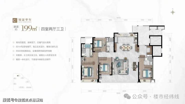外立面特点:超时代美学立面,干挂铝板、大面积双银LOW-E超白玻璃、金属线条