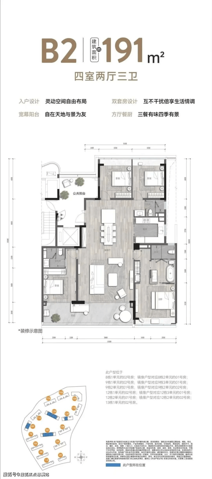 191㎡ B2 户型:四室两厅三卫,优化居住体验