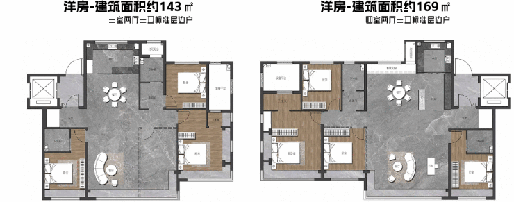 尤其是建筑面积约143㎡和169㎡两款户型,实现「双套房」配置,将舒适度推向顶峰。