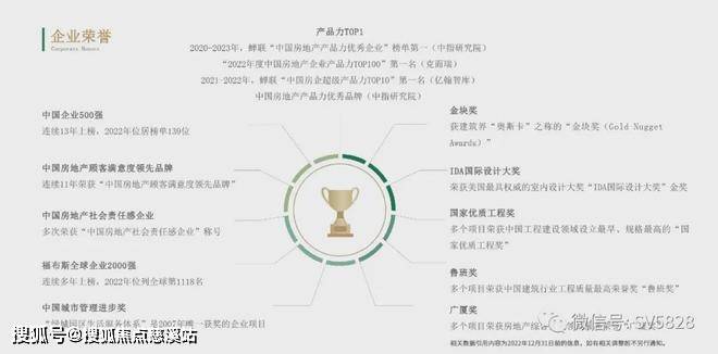 凭借行业领先的产品实力,连续19年位居“中国房地产百强企业综合实力TOP10”、连续12年在“中国城市居民居住满意度”调查中全国领先、2020-2023年蝉联“中国房地产产品力优秀企业”榜单第一 (中指研究院)、多个项目荣获中国工程建设领域设立最早、规格最高的“国家优质工程奖”等荣誉。