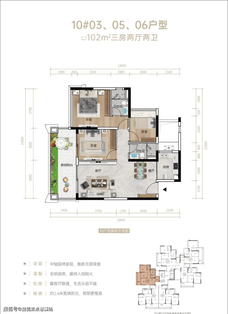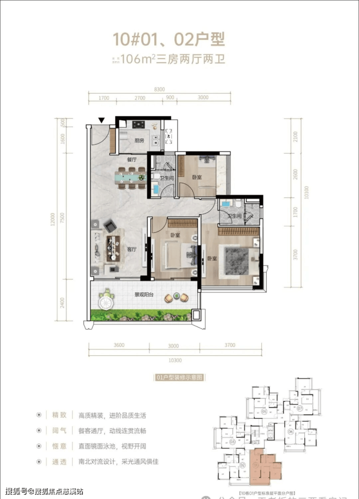 🏡在售户型:约102-106㎡ 三房两厅两卫