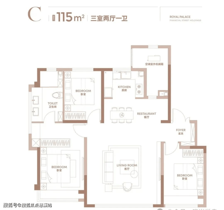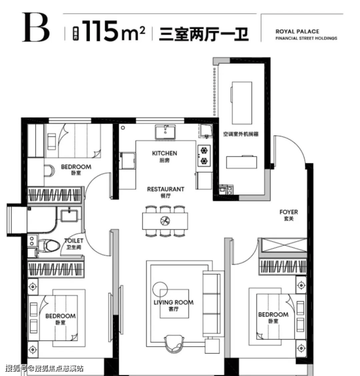 115㎡边户,三室两厅一卫(可变双卫)