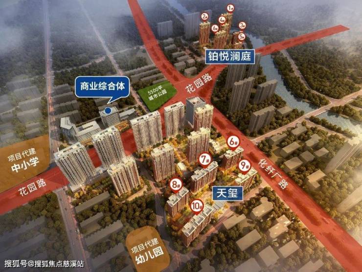 除了地铁配套,天玺、铂悦澜庭楼下还有城市公园、商业综合体等配套。