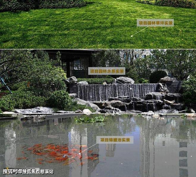 整个园区可圈可点的地方不少:假山跌水、锦鲤池塘,草坪均匀度,饱和度都很高……