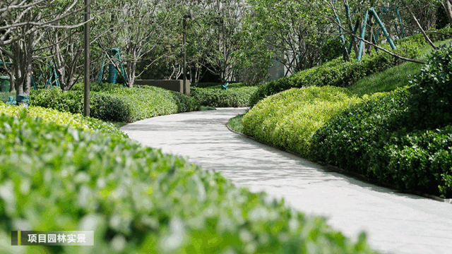 令所有家长都在意的儿童游乐区,也做了安全保障,儿童游乐场地面铺设了彩色塑胶,踩上去具有弹性,这样即使儿童玩耍中摔倒了,也不会磕伤。在考虑到小孩经常玩耍,可能会比较吵闹,所以此处植物种植也比较密集一些,大大减少了对周边楼栋邻居的噪音干扰。