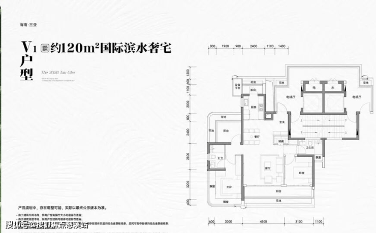 • 120㎡主力户型(V1/V2):◦ 一梯一户+全明电梯厅,专属入户空间增强私密性。