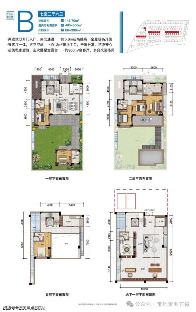 双挑空客厅:地上地下各两层通透空间,可作为派对、茶道、观影、健身等多功能场地,满足圈层社交需求。