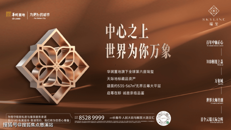 而瑞玺占位长春黄金十字中轴正心,毗邻约289米的封面地标长春华润中心,近享M1重奢万象城、国际5A级办公地标华润大厦、无界云幕大平层等高端业态的聚合相融,以多维生活场景的赋能,刷新了长春城市中轴上的塔尖生活想象。