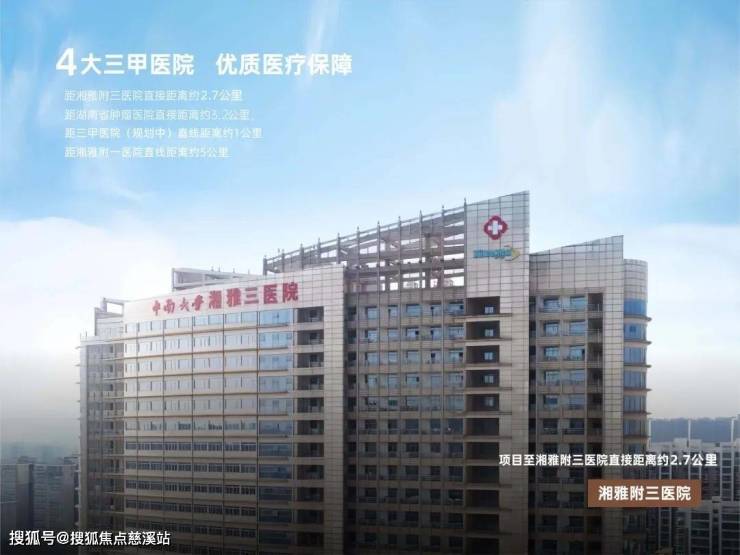 中南大学湘雅三医院、湖南省肿瘤医院、三甲医院(规划中)、中南大学湘雅一医院,呵护全家健康。