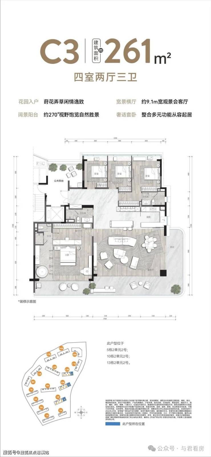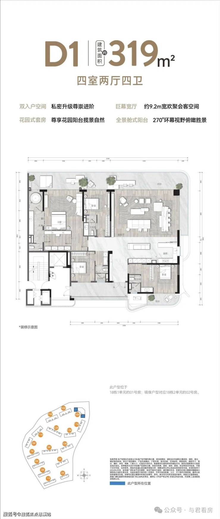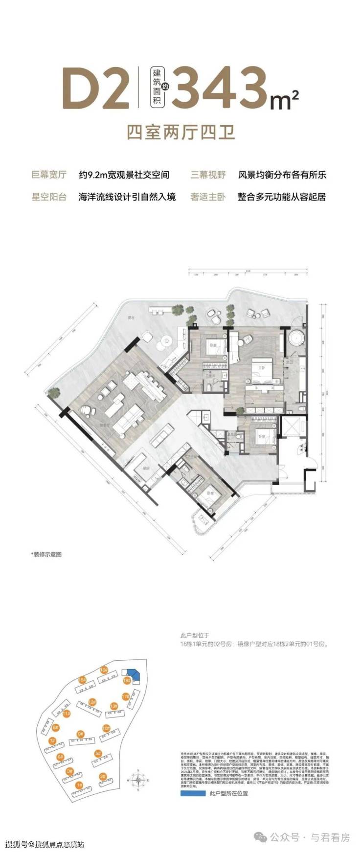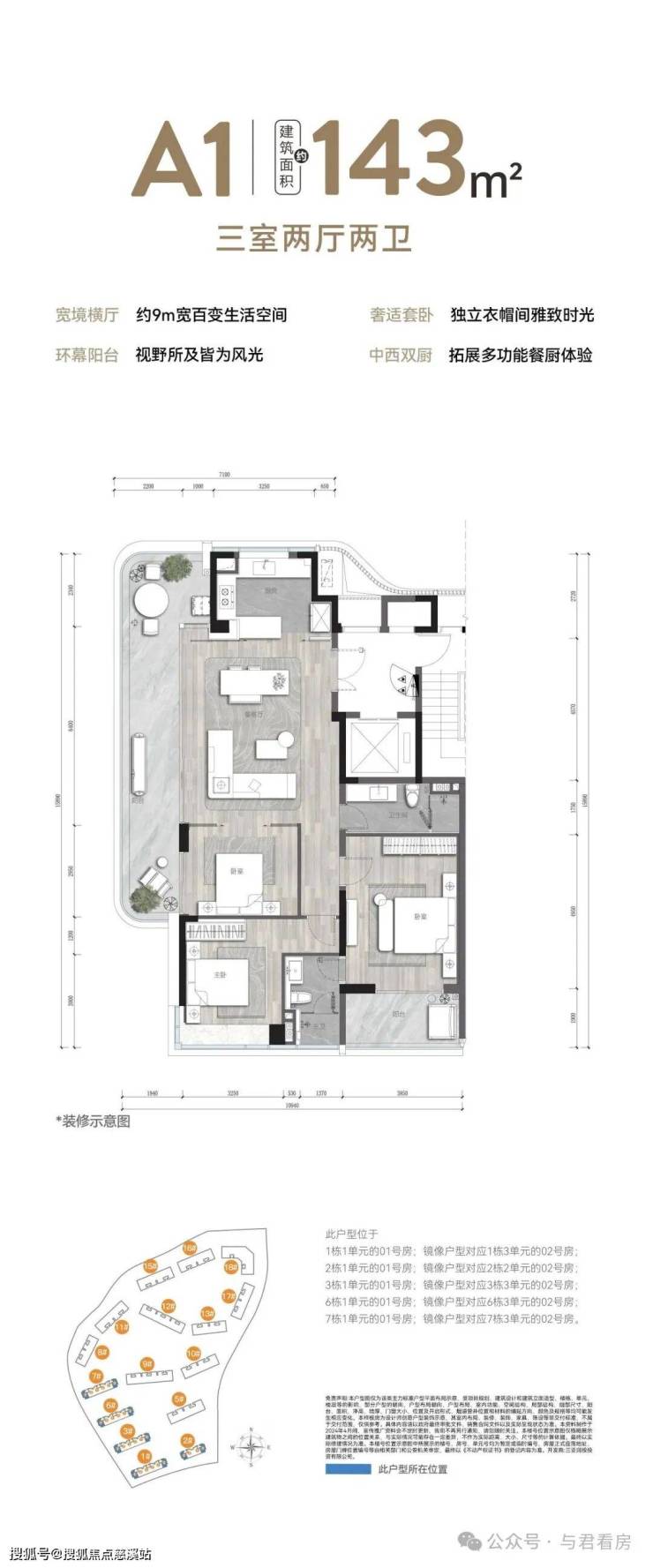 一期建面143平三居,191平、255平、343平四居奢阔大平层