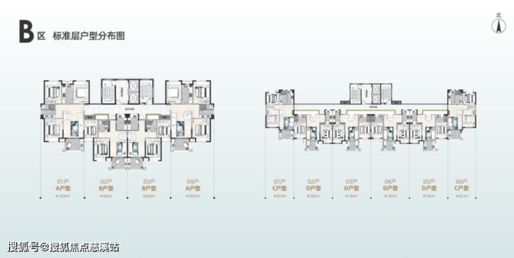 B区高层:76㎡、81㎡、83㎡稀缺两房,103㎡珍藏三房