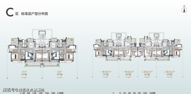 C区洋房:106㎡ 2+1房、130㎡ 3+1房(1梯2户)