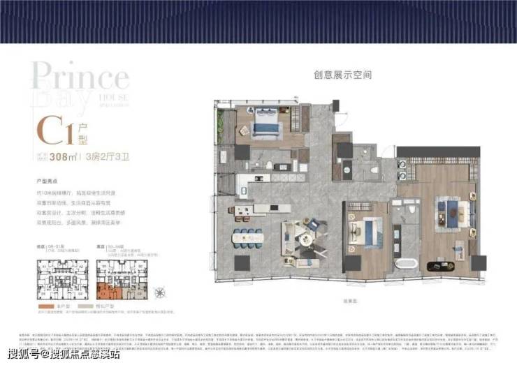 项目打造主力建面约308-415㎡纯粹品质公寓共191席,顶层为建面约1280㎡山海大宅。