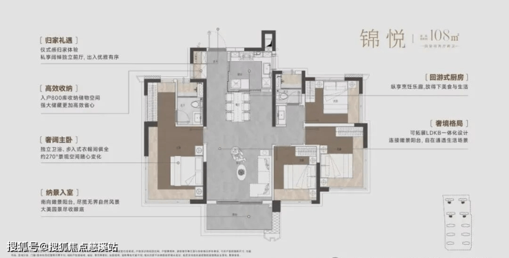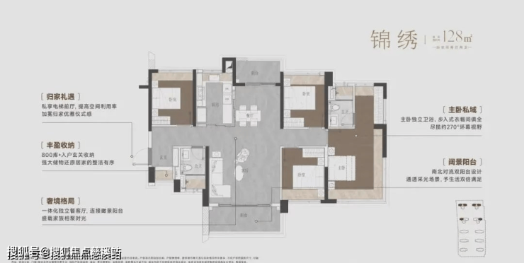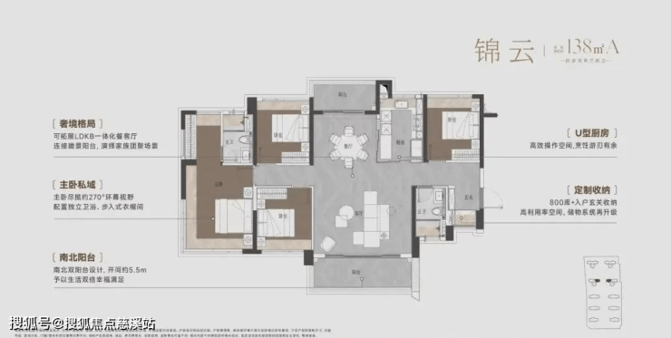 2.容积率2.2,规划500户,户数少、密度低。户型涵盖108-168㎡,主流为南北对流双阳台设计,得房率超100%,部分户型达110%以上,空间利用率高。