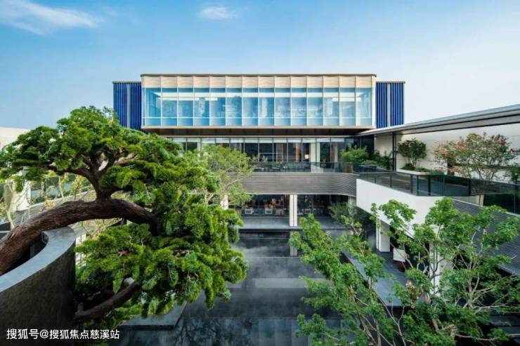 巨幅斜切式外挑门头,复刻中式古建筑「大屋檐」意象,宛如满载岁月珍宝的归航巨轮。