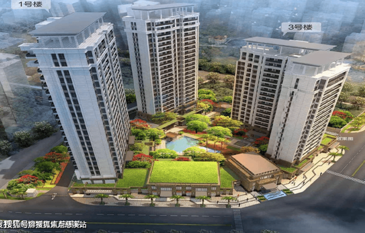 建筑设计:由三栋板式高层住宅及相关配套物业、临街低层商业环绕组成,内部为中央景观花园及泳池。采用外连廊式设计,带来更多通风、采光及景观视野,同时也提升了建筑的整体美观度。